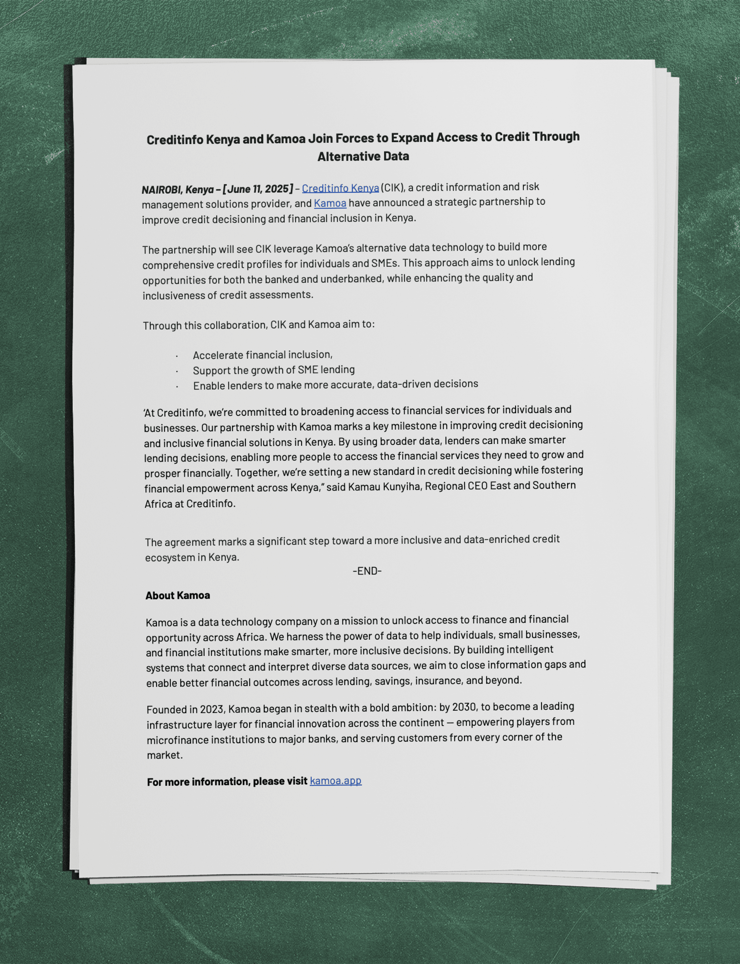 This collaboration is designed to unlock more inclusive, data-driven financial decision-making in Kenya — helping financial institutions serve individuals and small businesses with greater accuracy, fairness, and insight.